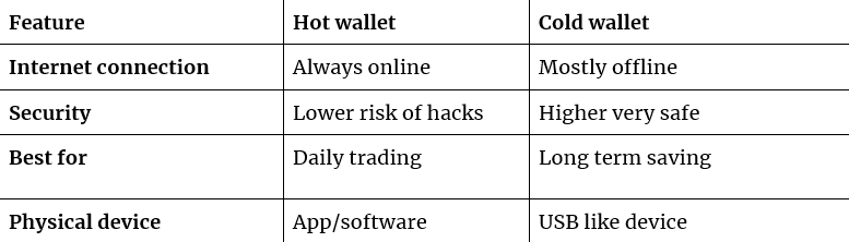 Hot Wallet: Like the cash in your physical pocket. It’s easy to spend but you wouldn't carry your life savings in it.