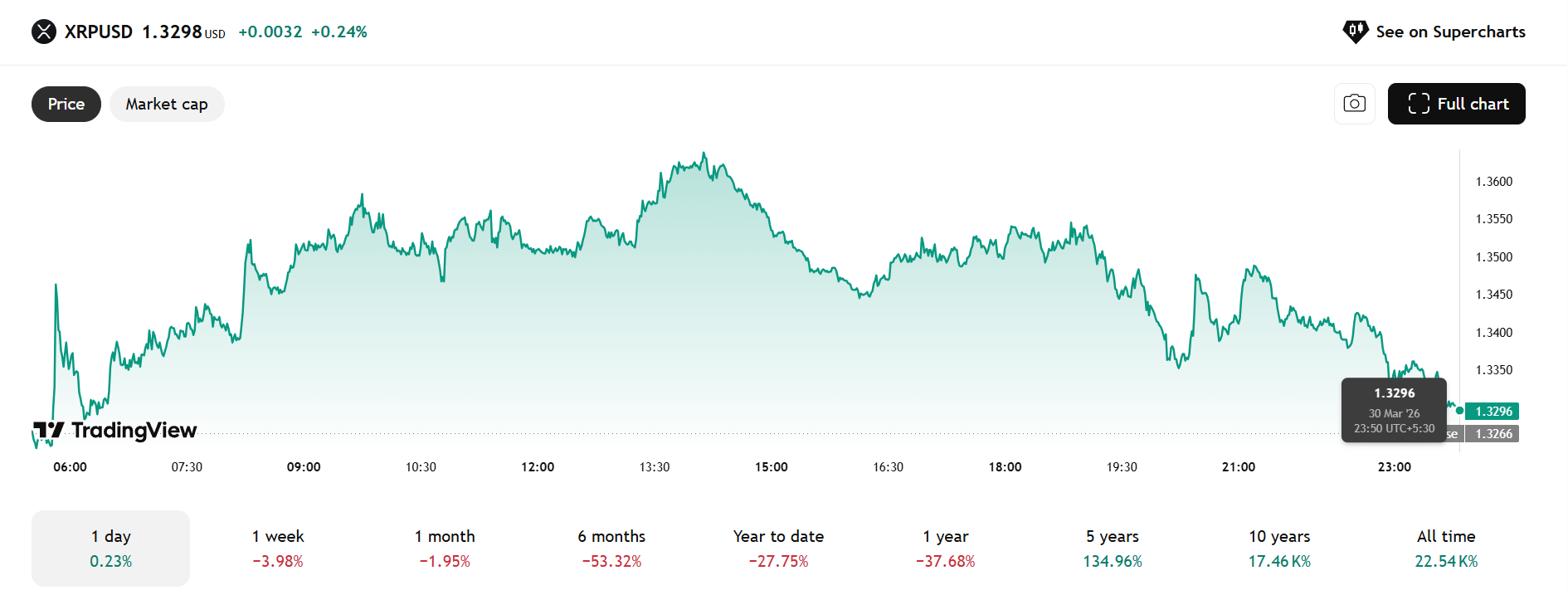 XRP’s price recently tested the $1.30 level, a crucial support zone that has historically acted as a strong base for price recovery. Despite bearish pressure across the broader crypto market, buyers have stepped in aggressively to prevent further downside.
