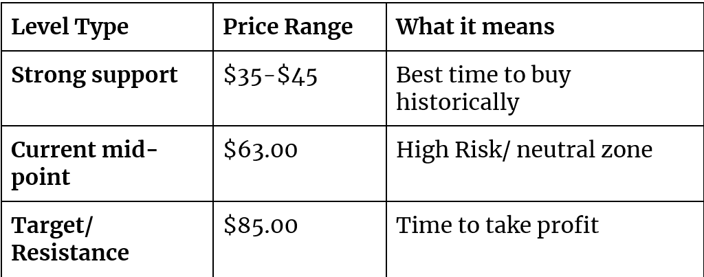 The Current Price ($63): We are currently sitting in the middle. This is a Wait and See zone.