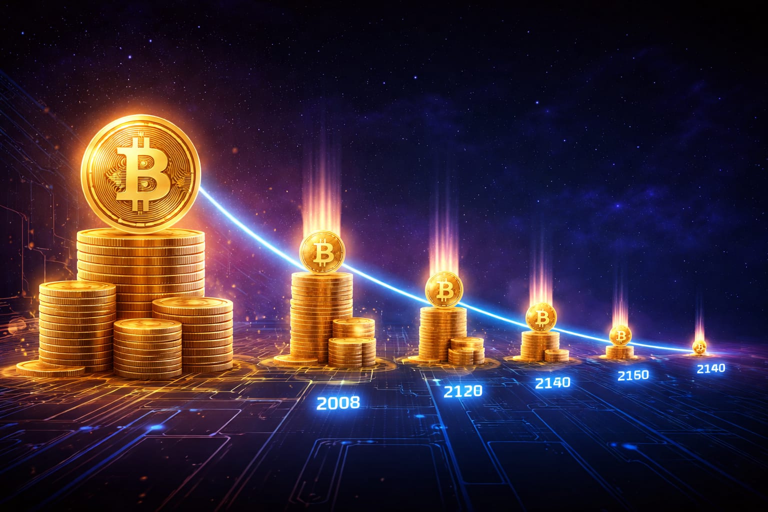 Why so long? Bitcoin has "halving" built into its code. Every four years, the reward miners get for adding blocks to the blockchain gets cut in half. Right now in 2026, miners earn 3.125 BTC per block. In 2028, that drops to 1.5625 BTC. It keeps halving until the reward becomes essentially zero.